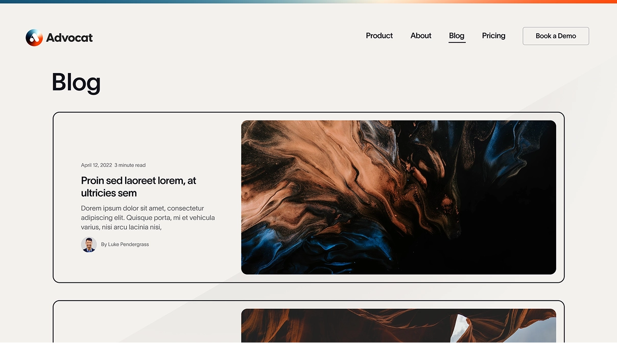 We started by shaping Advocat's brand - choosing colors, fonts, and crafting a unique logo and mockups. From there, we designed their whole website, creating a visually appealing platform. This design reflects Advocat's mission to simplify contracting for tech businesses, offering expertise and efficiency within their platform. Our work embodies their commitment to a streamlined process and an enhanced user experience.