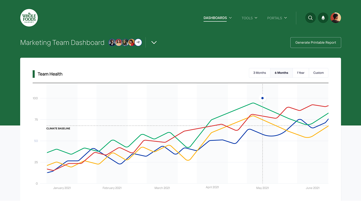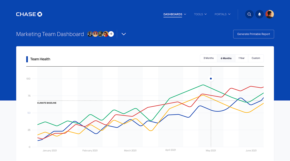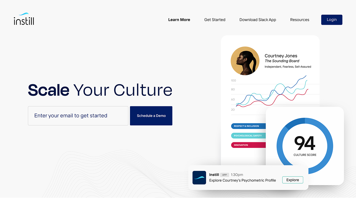 We designed Instill's landing pages and feature-rich dashboard, spotlighting their organizational culture software with analytics on team health and individual profiles